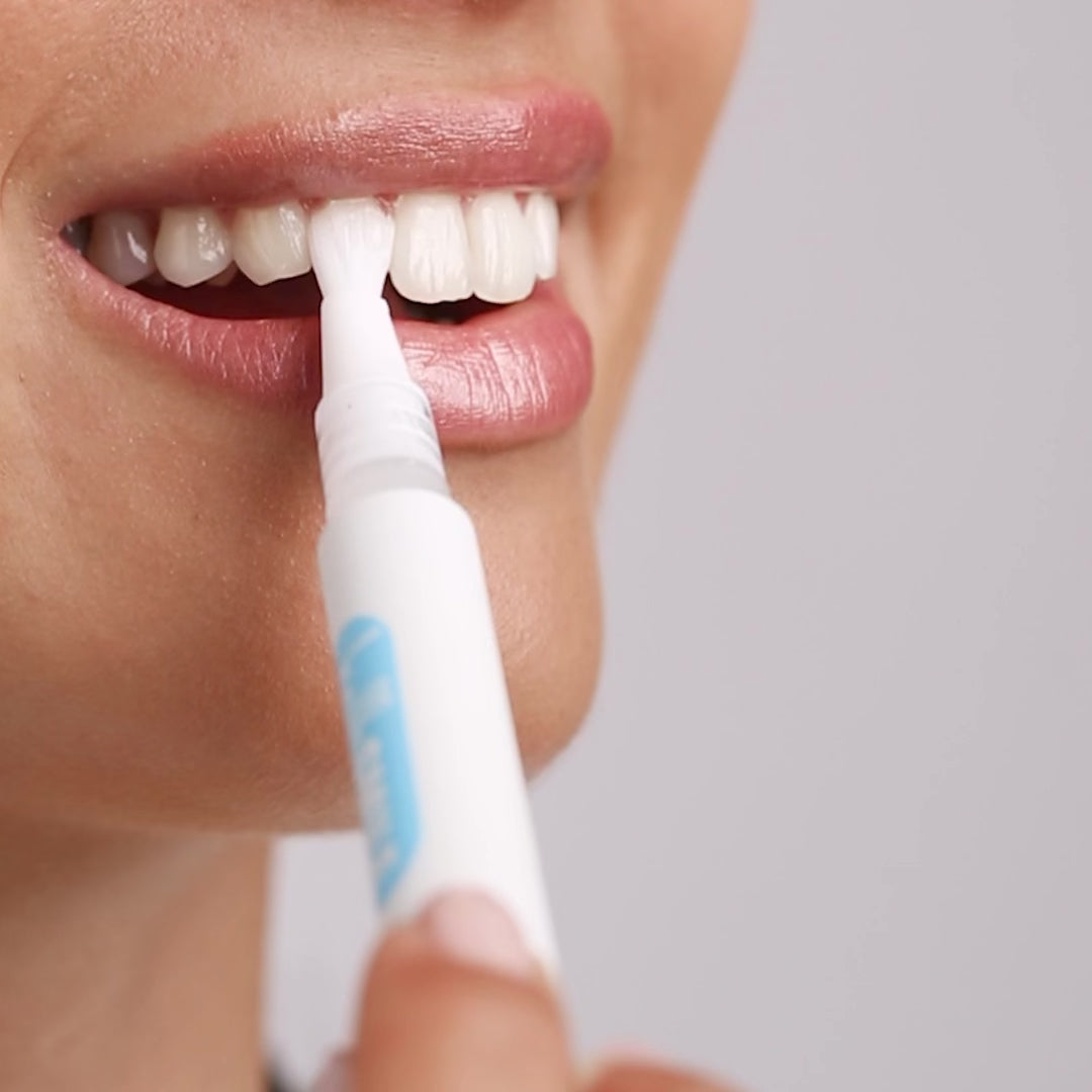 Olovka za izbeljivanje: Očisti i osuši zube, izvuci malo gela vrhom olovke, povuci duž mrljaste površine, sačekaj 2–3 minuta, obriši višak. Idealna je pred izlazak ili sastanak.